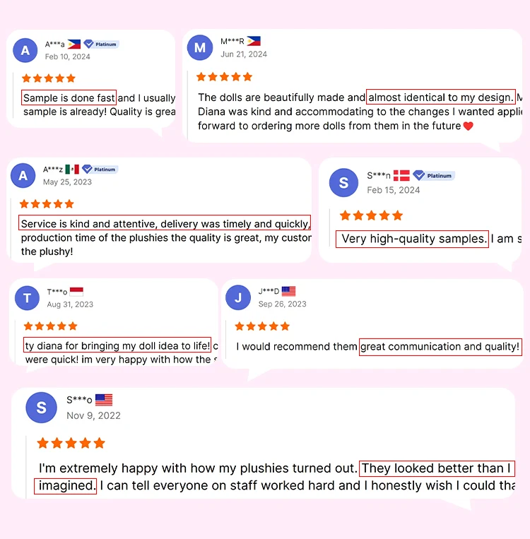 Q3: What's your delivery time? A3: Sample is 3-5 days.It is depends on quantities and designs. bulk order we produce within 15-20 days after the payment confirmed. |